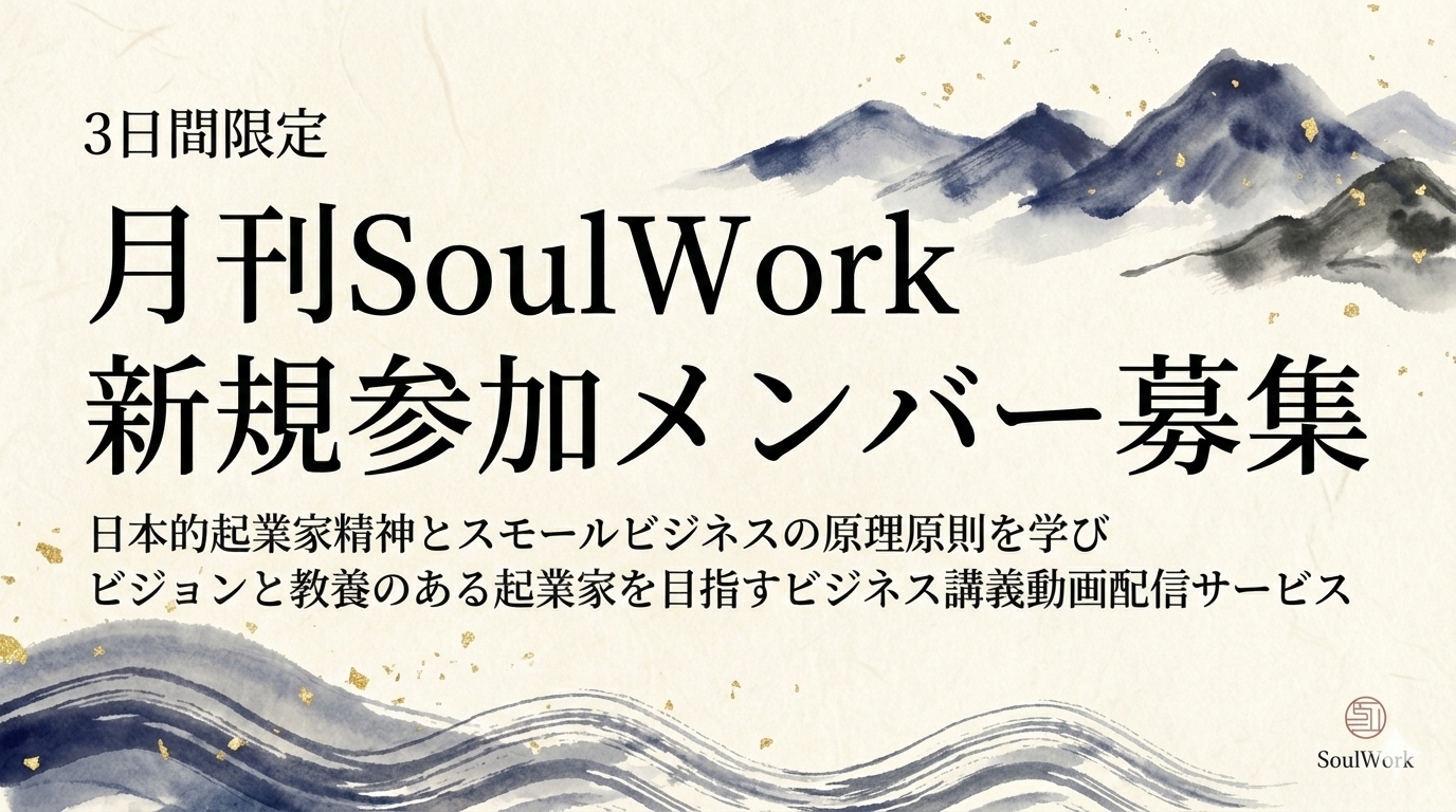 本講座「月刊ソウルワーク」は、単なるビジネススキル講座ではない。日本思想の歴史的系譜と、近代以降の世界的経営理論を融合し、現代のスモールビジネス経営に適用するという点で、大学・ビジネススクール・高額セミナーなど、国内外を見渡しても類を見ない独自の教育コンテンツである。